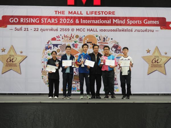 ผลการแข่งขันศึกชิงแชมป์เซียนหมากล้อมดาวรุ่งดวงใหม่ The MALL Lifestore Rising Stars 2026 วันอาทิตย์ที่ 22 กุมภาพันธ์ ณ ห้อง MCC HALL ชั้น 4 เดอะมอลล์งามวงศ์วาน มีผู้เข้าร่วมการแข่งขัน 500 คน