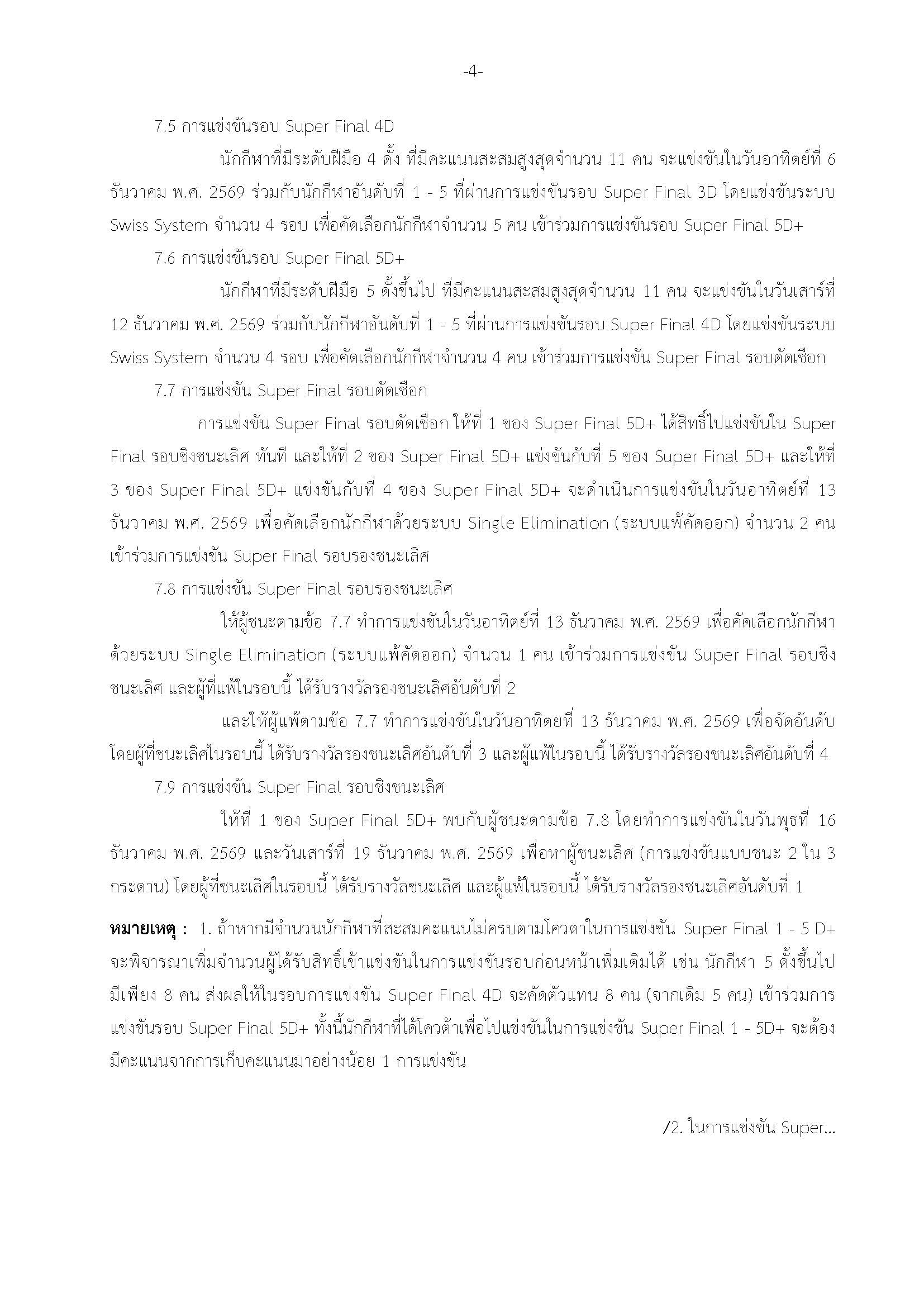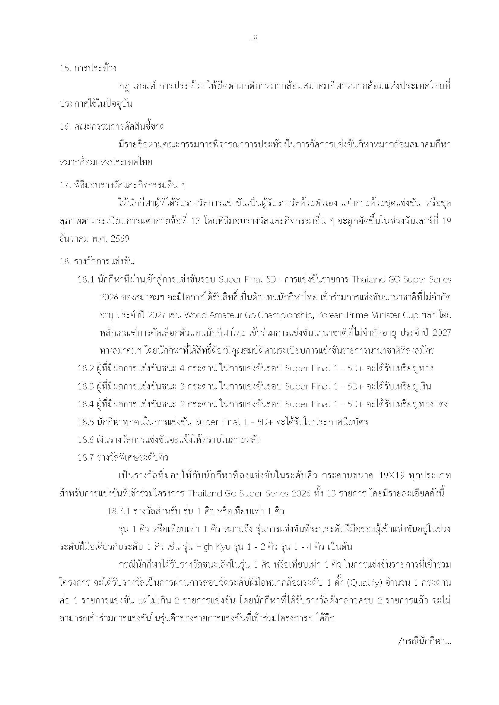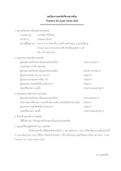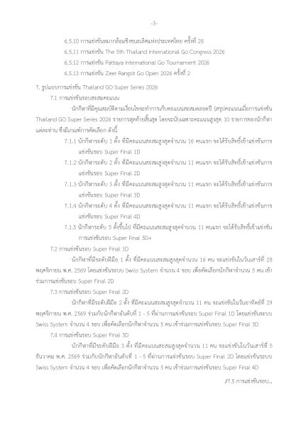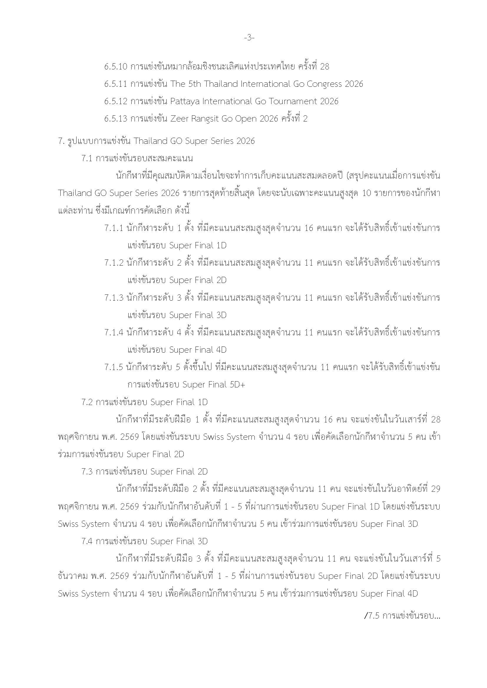ระเบียบการแข่งขันกีฬาหมากล้อม Thailand GO Super Series 2026
