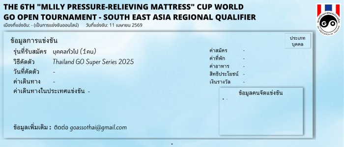 The 6th “MLILY Pressure-Relieving Mattress” Cup World Go Open Tournament – South East Asia Regional Qualifier